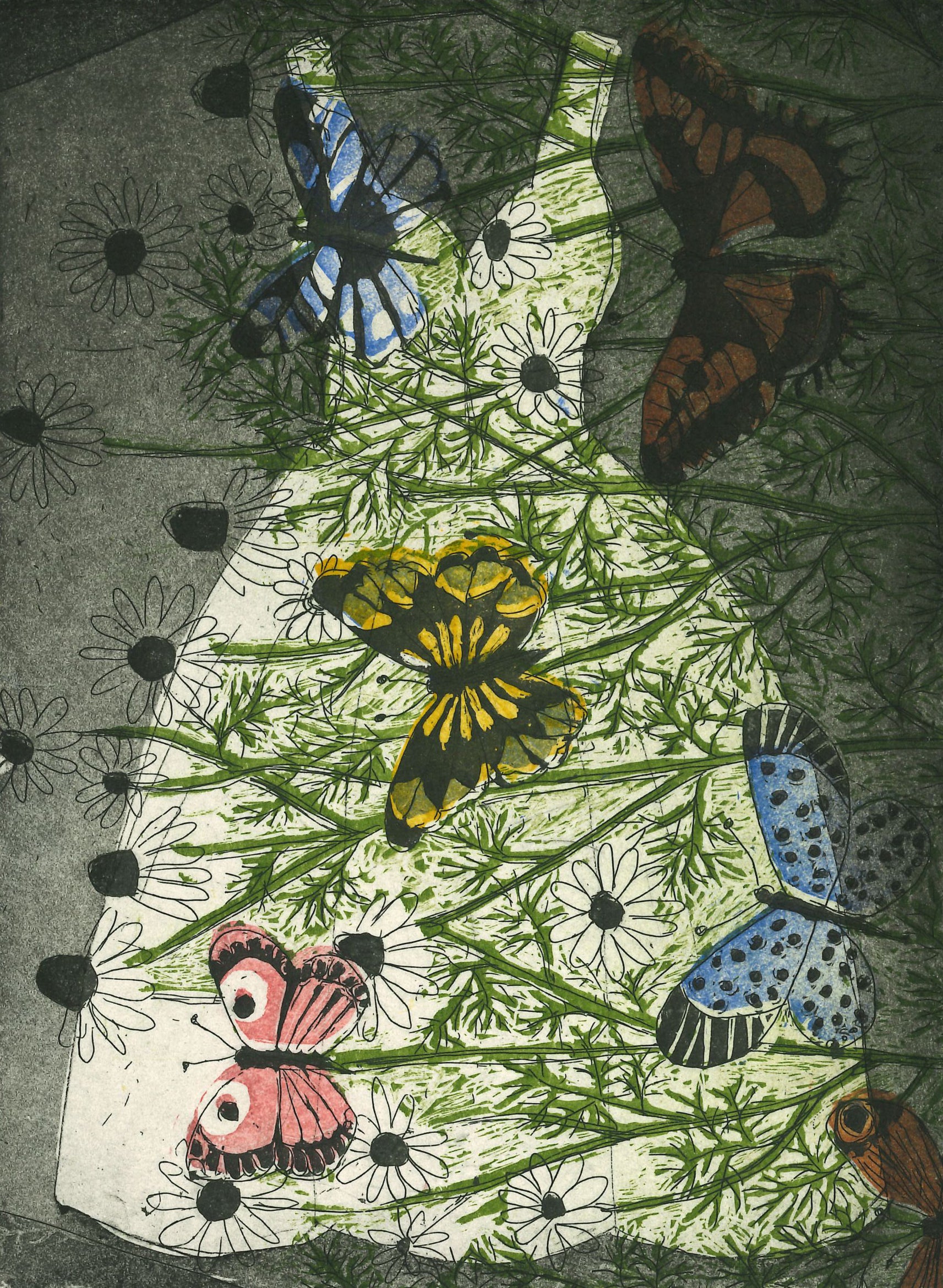 Kierrätetylle koevedokselle vedostettu puku, joka on uniikki. Kooltaan n. A5 (20x15cm). Pukuja on muutamaa eri mallia. Maksihameet on signeerattu 1/1 ja ne ovat erilaisia. Ne voidaan kehystää esimerkiksi valmiisiin valokuvakehyksiin. Maksihameet postitetaan kirjeenä ja voit tilata sen vaikka lahjaksi toimitettuna suoraan lahjansaajalle.