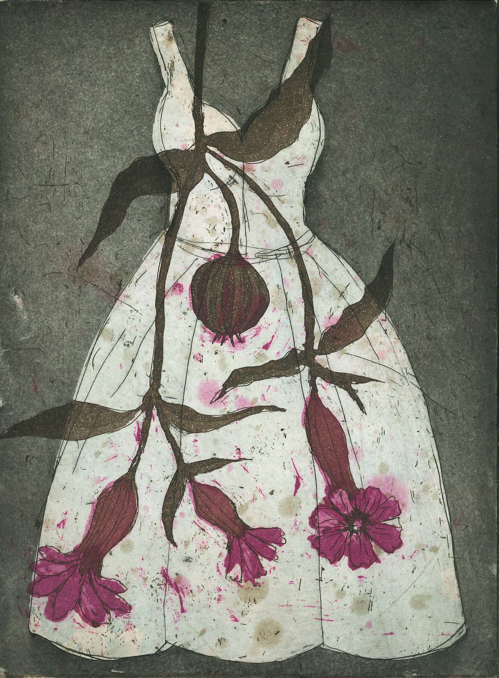 Kierrätetylle koevedokselle vedostettu puku, joka on uniikki. Kooltaan n. A5 (20x15cm). Pukuja on muutamaa eri mallia. Maksihameet on signeerattu 1/1 ja ne ovat erilaisia. Ne voidaan kehystää esimerkiksi valmiisiin valokuvakehyksiin. Maksihameet postitetaan kirjeenä ja voit tilata sen vaikka lahjaksi toimitettuna suoraan lahjansaajalle.