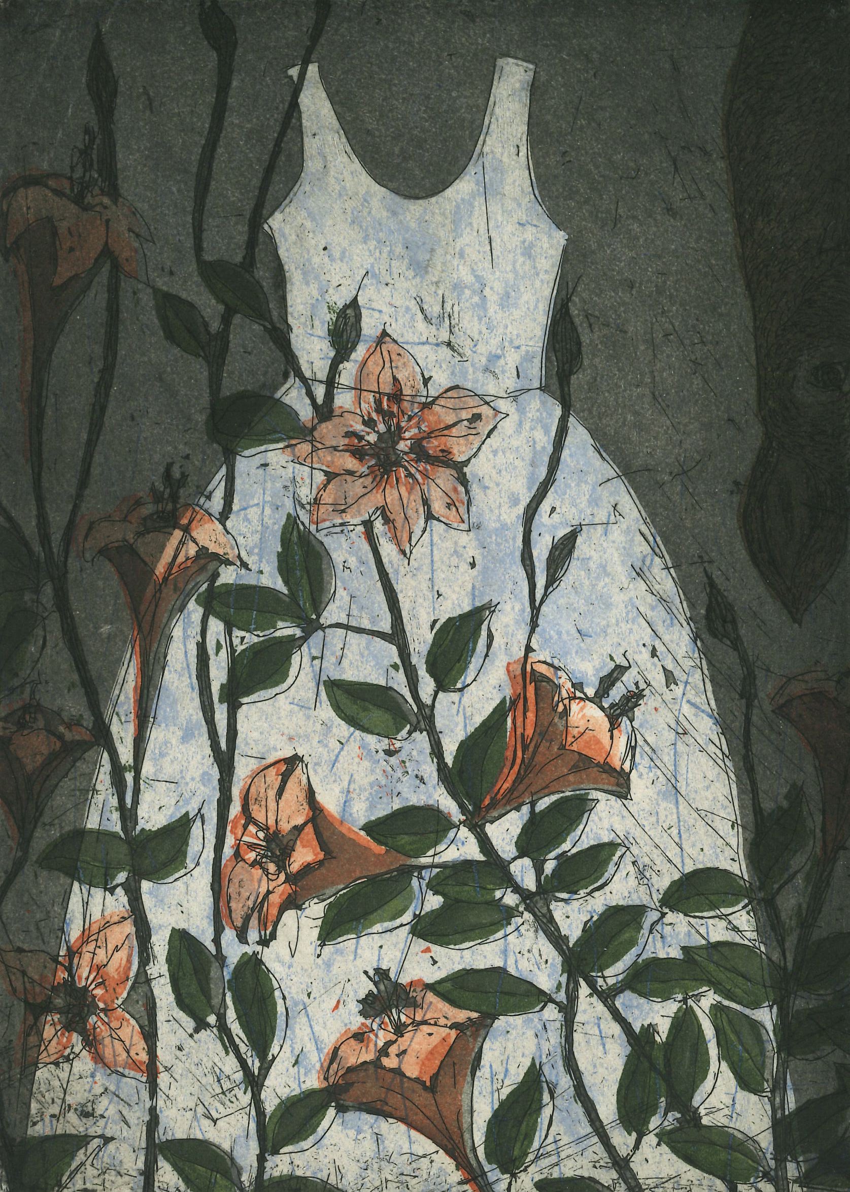 Kierrätetylle koevedokselle vedostettu puku, joka on uniikki. Kooltaan n. A5 (20x15cm). Pukuja on muutamaa eri mallia. Maksihameet on signeerattu 1/1 ja ne ovat erilaisia. Ne voidaan kehystää esimerkiksi valmiisiin valokuvakehyksiin. Maksihameet postitetaan kirjeenä ja voit tilata sen vaikka lahjaksi toimitettuna suoraan lahjansaajalle.